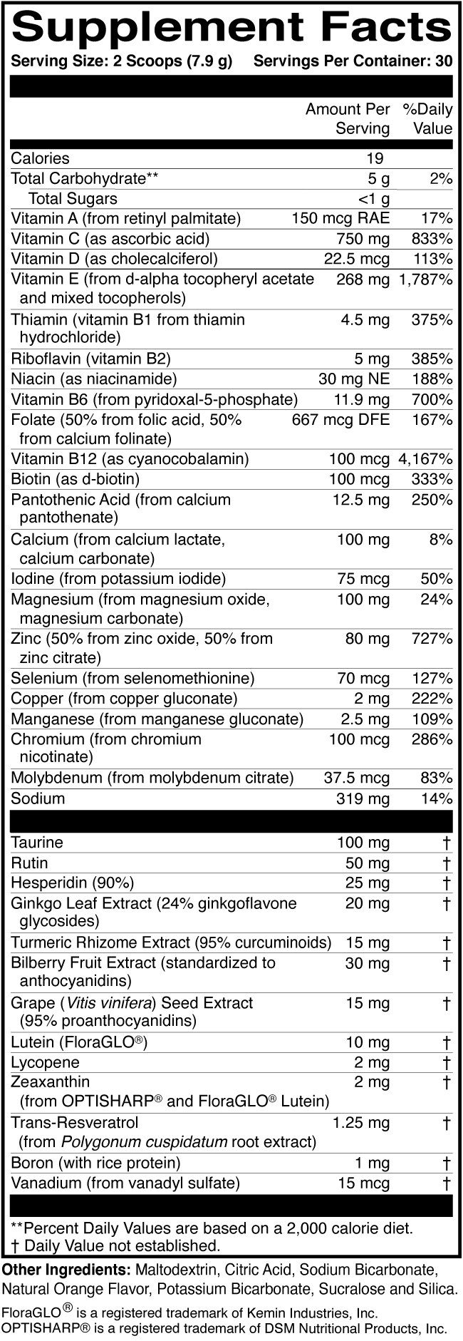 MacularProtect Complete Drink Mix is a convenient, all-in-one formula providing powerful support for macular & whole body health. It offers nutrients at levels found to promote healthy vision in the AREDS & AREDS 2 clinical trials – such as 10 mg lutein, as well as over 30 other key ingredients.
