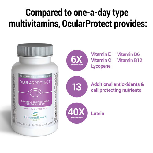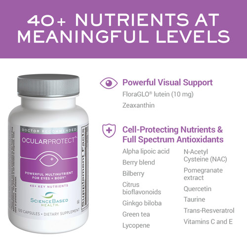 OcularProtect is a robust, antioxidant-rich multinutrient that offers advanced protection for visual and whole body health. OcularProtect delivers optimal levels of over 40 key nutrients, including a diverse array of natural plant compounds, that help to fight free radicals and promote overall well-being.